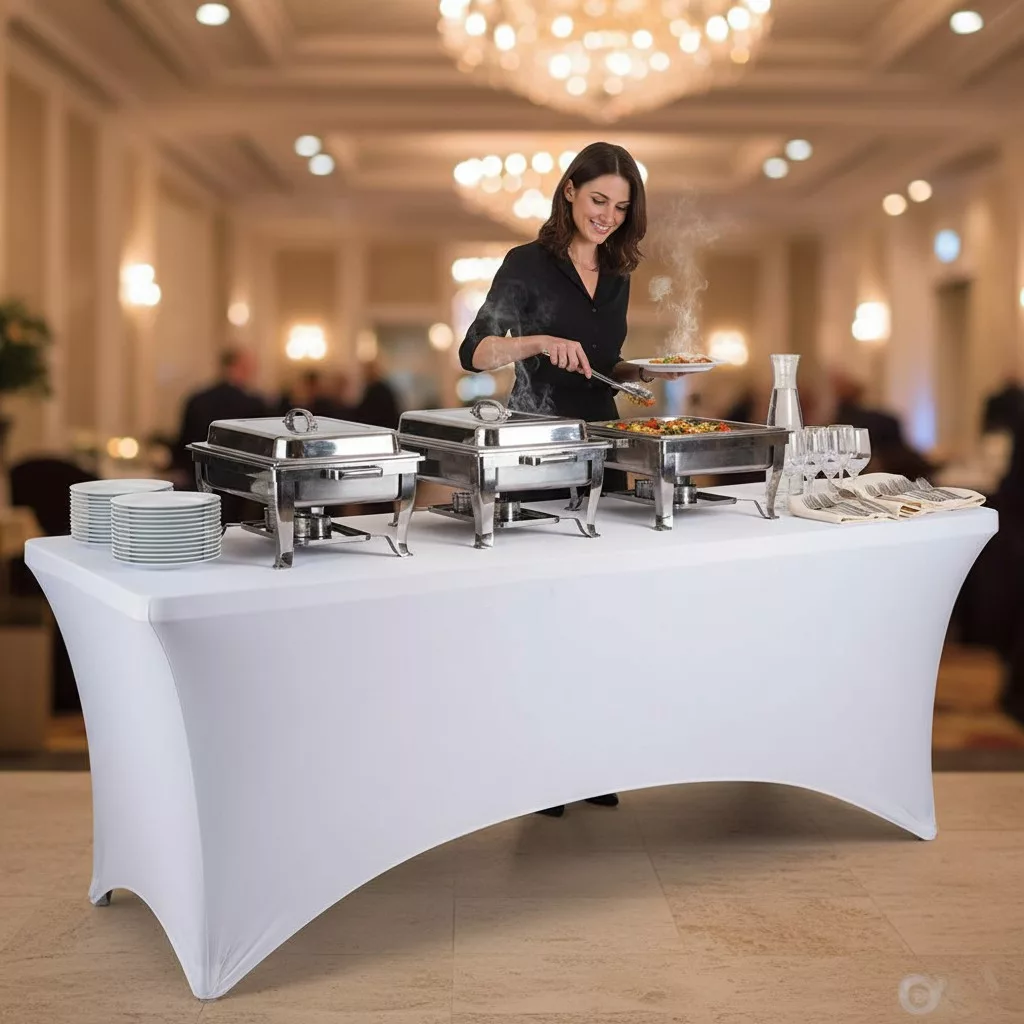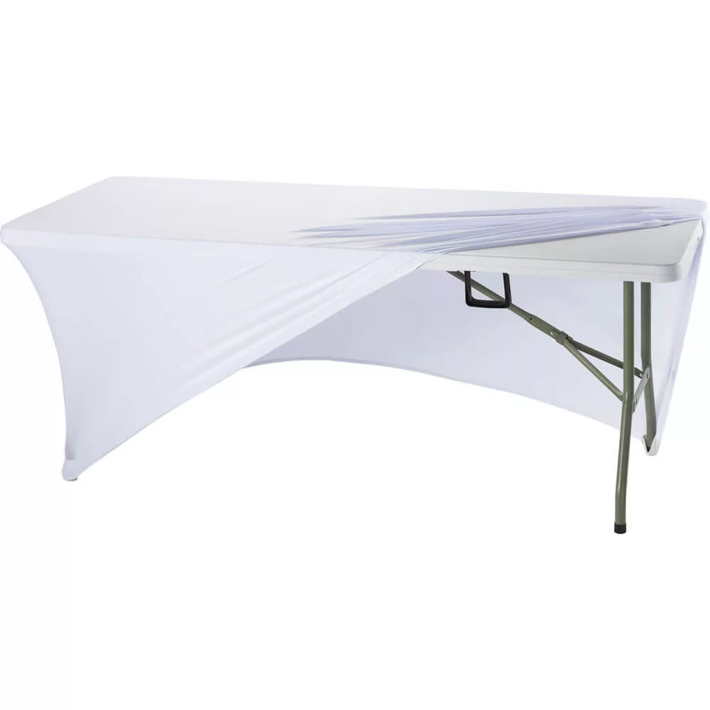 A fehér asztalhuzat 183 cm-es rendezvényasztalokhoz tökéletes megoldás, ha a praktikus catering asztalt elegáns, egységes megjelenésű rendezvénybútorrá szeretnéd alakítani.