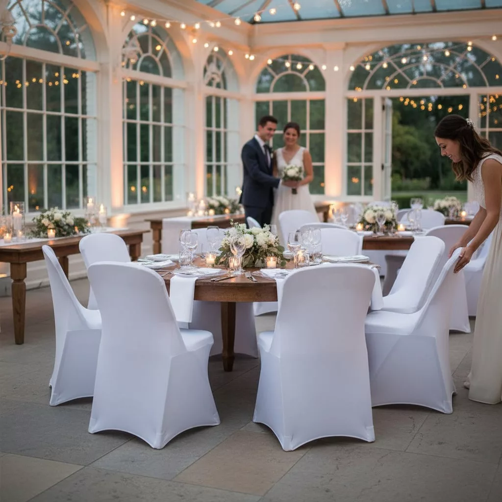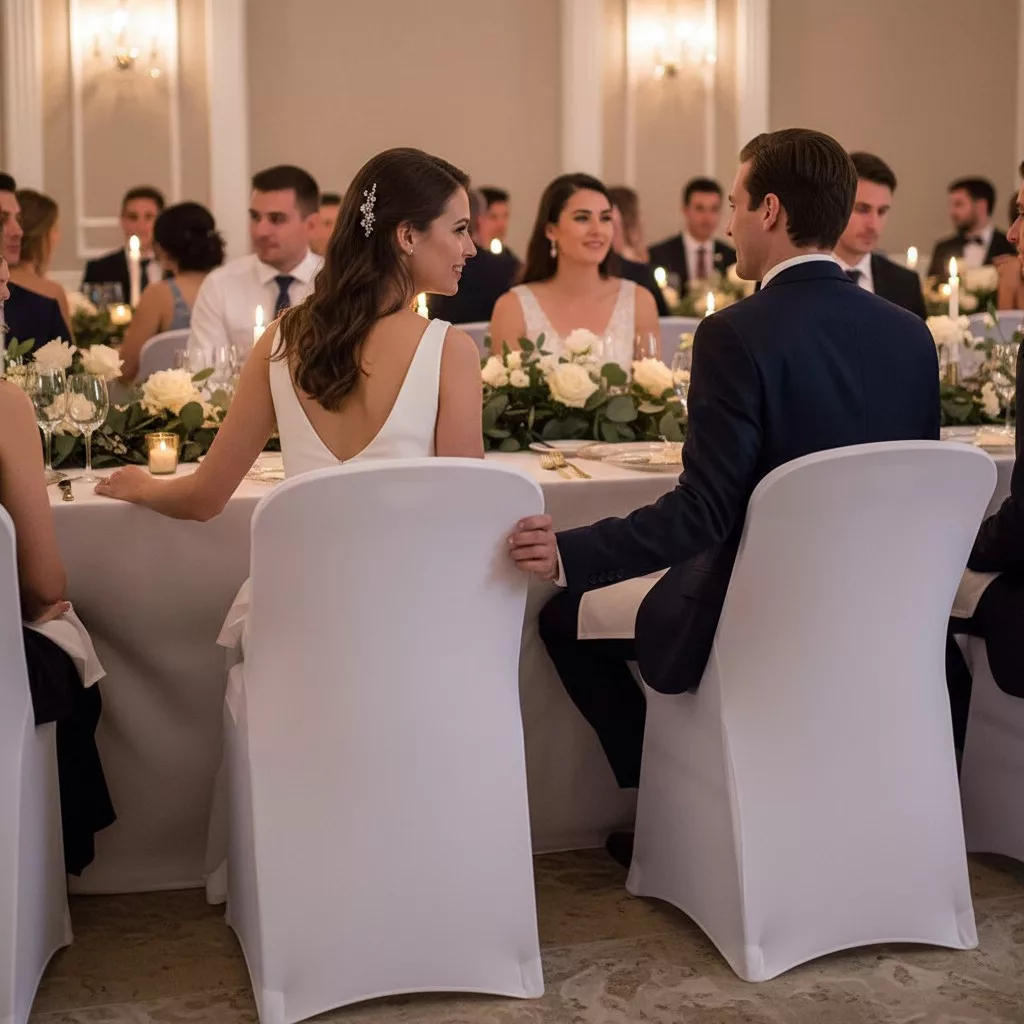 A fehér rendezvényszékhuzat gyors és látványos megoldás arra, hogy az egyszerű székeket elegáns, egységes megjelenésű rendezvénybútorokká alakítsd.