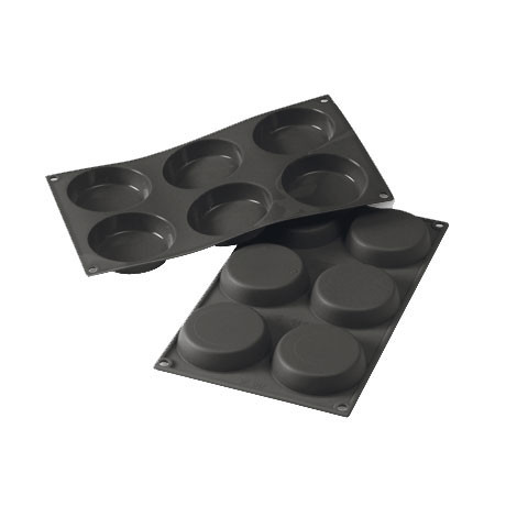Fekete szilikon flan forma, 80 mm átmérőjű és 18 mm magas, ideális mousse, flan, pite, tartelette vagy sós falatok készítéséhez.