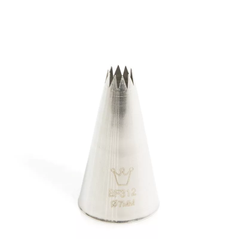 Martellato 7 mm-es francia csillagcsőA Martellato 7 mm-es francia csillagcső ideális választás minden cukrászati tevékenységhez, legyen szó akár professzionális, akár otthoni használatról. Ez a cső kiváló minőségű rozsdamentes acélból készült, amely garantálja a tartósságot és a hosszú élettartamot. A csillag alakú kialakítás lehetővé teszi a különböző díszítő technikák alkalmazását, így tökéletes választás a kreatív sütemény- és tortadíszítéshez.Főbb jellemzők: Anyag: Magas minőségű rozsdamentes acél Méret: 7 mm-es csillag alakú francia stílus Kialakítás: Ergonomikus és könnyen kezelhető dizájnHasználati előnyök: Tartós anyag: A rozsdamentes acél biztosítja a hosszú élettartamot és a könnyű tisztítást. Precíz díszítés: A 7 mm-es csillag alakú kialakítás lehetővé teszi a finom és pontos díszítést, különböző minták és textúrák létrehozását. Sokoldalúság: Tökéletes választás különböző sütemények, torták, cupcake-ek és más édességek díszítéséhez.Ideális felhasználási területek: Cukrászdák: Professzionális díszítés a tökéletes megjelenés érdekében. Otthoni konyhák: Kreatív és precíz díszítés a családi összejövetelekre és ünnepekre. Hobbi pékek: Könnyen használható eszköz, amely segít a cukrászati technikák fejlesztésében.A Martellato 7 mm-es francia csillagcső kiváló választás minden olyan konyhába, ahol a minőség és a precizitás alapvető követelmény a sütés és díszítés során