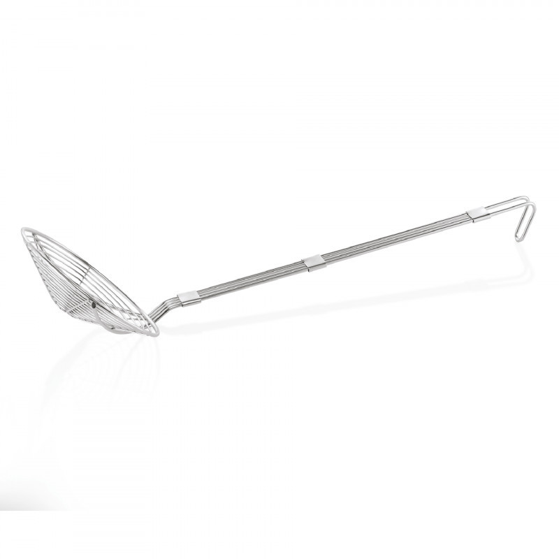 A Fritou kanál hosszú nyele lehetővé teszi a biztonságos munkát a forró olaj közelében, miközben masszív kialakítása a nagyobb mennyiségek kezelésére is alkalmassá teszi. Egy megbízható, elengedhetetlen darab minden professzionális és otthoni konyhában.