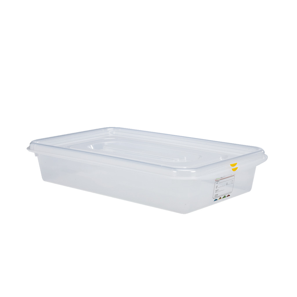 GN 1/1 edény, polipropilén GN edény, légmentesen záró fedél, 13 literes tárolóedény, professzionális ételtároló, nagykonyhai GN tároló, hőtűrő tárolóedény, Gastronorm szabvány edény