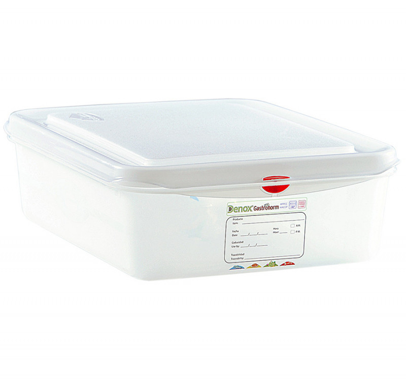 Ez a GN 1/2 méretű, 100 mm mély és 6,5 literes kapacitású műanyag edény kiváló minőségű, ideális professzionális és otthoni használatra egyaránt. A hermetikusan záródó fedéllel ellátott edény tökéletes ételek tárolására a hűtőszekrényben vagy a fagyasztóban, megőrizve azok frissességét és ízét. A készlet 5 jelölőcsipeszt tartalmaz (piros, kék, sárga, zöld, lila), amelyek segítenek a tartalom rendszerezésében és könnyebb azonosításában. A tartályok felcímkézhetők és méretezéssel is rendelkeznek. A GN 1/2 méret (325x265 mm) és a 100 mm-es mélység 6,5 literes űrtartalmat biztosít. A Polipropilénből készült anyag tartós, könnyen tisztítható és mikrózható. A szállítás fedéllel együtt történik. A GN szabványos méret garantálja a kompatibilitást a legtöbb GN kompatibilis tárolórendszerrel.