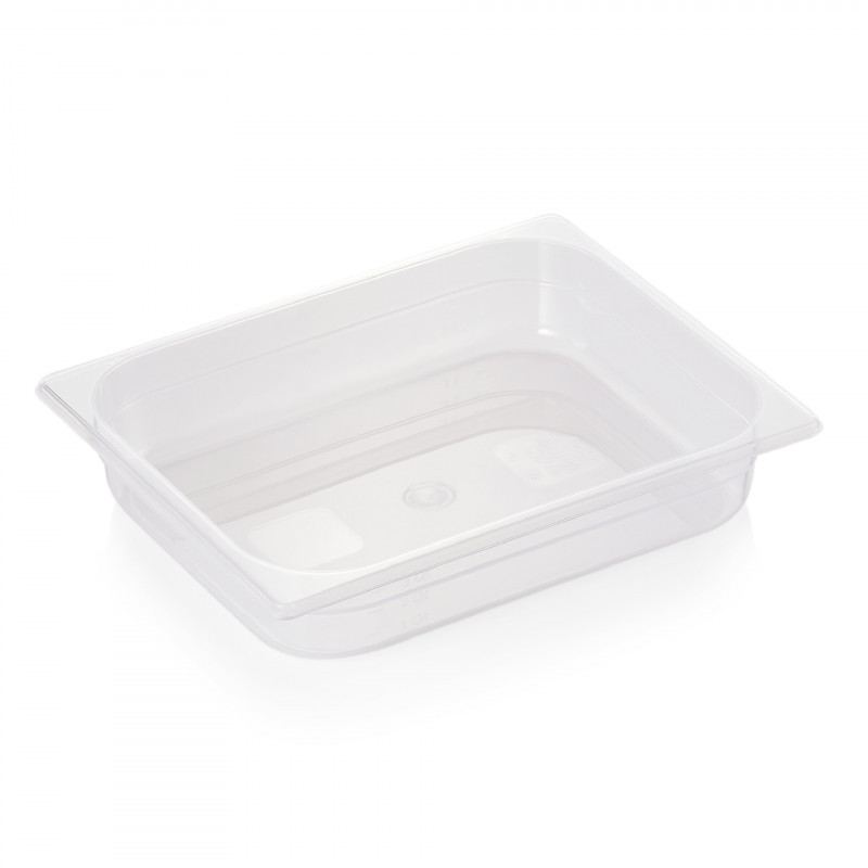 GN edény 1/2 65 mm, 4 l, mikrózható polipropilén kiváló minőségű, ideális professzionális és otthoni használatra egyaránt.
