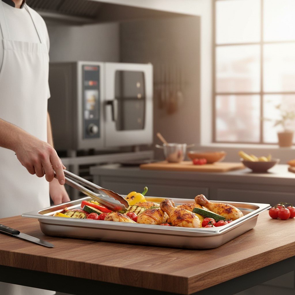 - Hatékonyság: A szabványos méretnek köszönhetően könnyen kombinálható más GN edényekkel és konyhai eszközökkel.