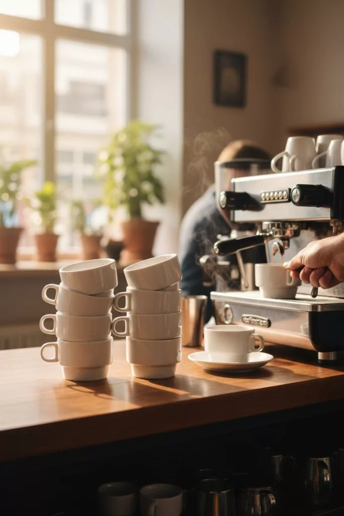 A sorolható porcelán csészék különösen praktikusak vendéglátásban, mert helytakarékosan tárolhatók, jól bírják az ipari mosogatást és egységes megjelenést biztosítanak a kávé felszolgálásakor.