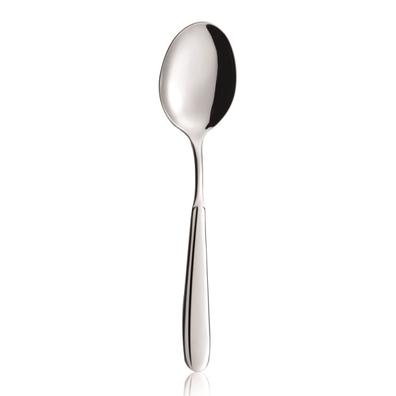 A Giotto szervírozókanál egy kiváló minőségű konyhai eszköz, amelyet a legmagasabb szintű funkcionalitás és elegancia jellemez. Ez a kanál 3 mm vastagságú, ami biztosítja a tartósságot és a stabilitást a mindennapi használat során. Az anyaga 18/10-es rozsdamentes acél, amely garantálja a hosszú élettartamot és a korrózióval szembeni ellenállást. Az ilyen típusú acél 18% krómot és 10% nikkelt tartalmaz, ami nemcsak a rozsdamentességet biztosítja, hanem a fényes, tükörszerű felületet is, amely elegáns megjelenést kölcsönöz a kanálnak. A Giotto szervírozókanál ideális választás bármilyen étel tálalásához, legyen szó levesekről, főételekről vagy köretekről. Ergonomikus kialakítása kényelmes fogást biztosít, míg a letisztult dizájn bármilyen asztali terítékhez illeszkedik. Könnyen tisztítható, mosogatógépben is mosható, így praktikus és időtálló kiegészítője lehet bármely konyhának.