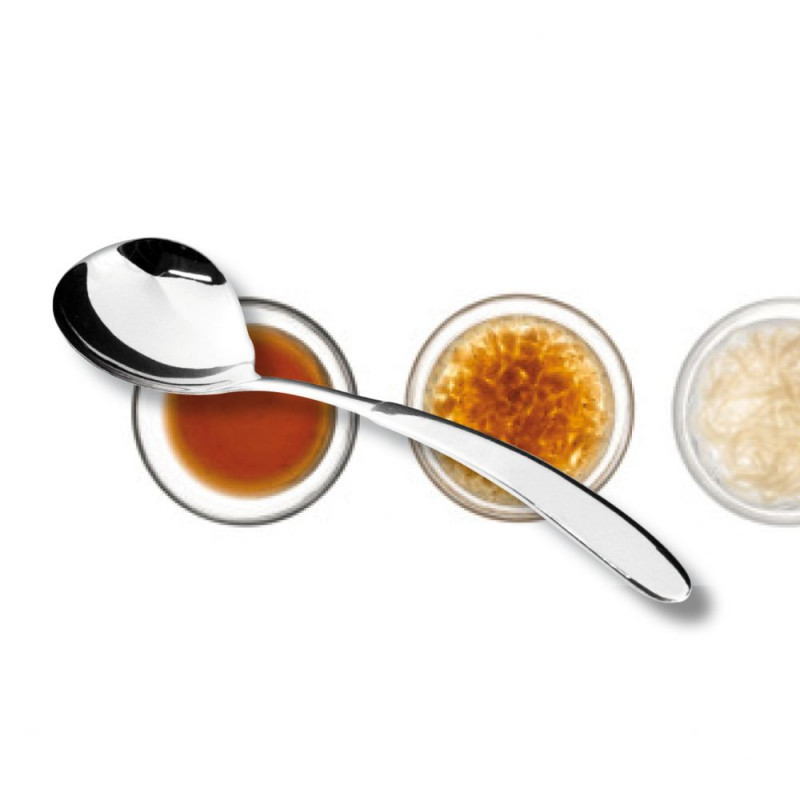 A Giotto szószos kanál egy elegáns és funkcionális konyhai eszköz, amelyet a legmagasabb minőségi szabványok szerint terveztek. Ez a kanál 3 mm vastag, ami biztosítja a tartósságot és a stabilitást használat közben. Az anyaga 18/10-es rozsdamentes acél, amely garantálja a hosszú élettartamot és a korrózióval szembeni ellenállást. Az acél összetétele 18% krómot és 10% nikkelt tartalmaz, ami nemcsak a rozsdamentességet biztosítja, hanem a fényes, tükörszerű felületet is, amely elegáns megjelenést kölcsönöz a kanálnak.A Giotto szószos kanál ideális választás különféle szószok, mártások és öntetek tálalásához. Ergonomikus kialakítása kényelmes fogást biztosít, így könnyedén adagolhatja a kívánt mennyiséget. A kanál mérete és formája lehetővé teszi a precíz és cseppmentes tálalást, ami különösen fontos a finom ételek esztétikus prezentálásához.Ez a szószos kanál nemcsak praktikus, hanem stílusos kiegészítője is lehet bármelyik konyhának vagy étkezőnek. Könnyen tisztítható, mosogatógépben is mosható, így a karbantartása egyszerű és időtakarékos. A Giotto szószos kanál tökéletes választás mindennapi használatra vagy különleges alkalmakra, amikor a részletek is számítanak.