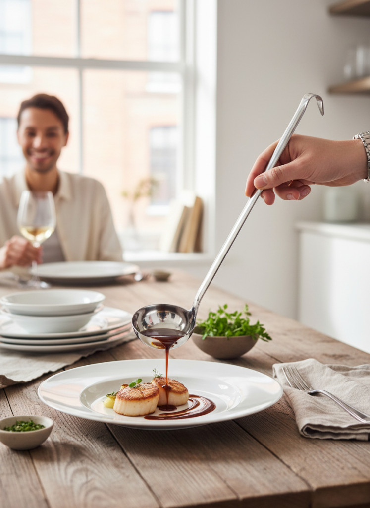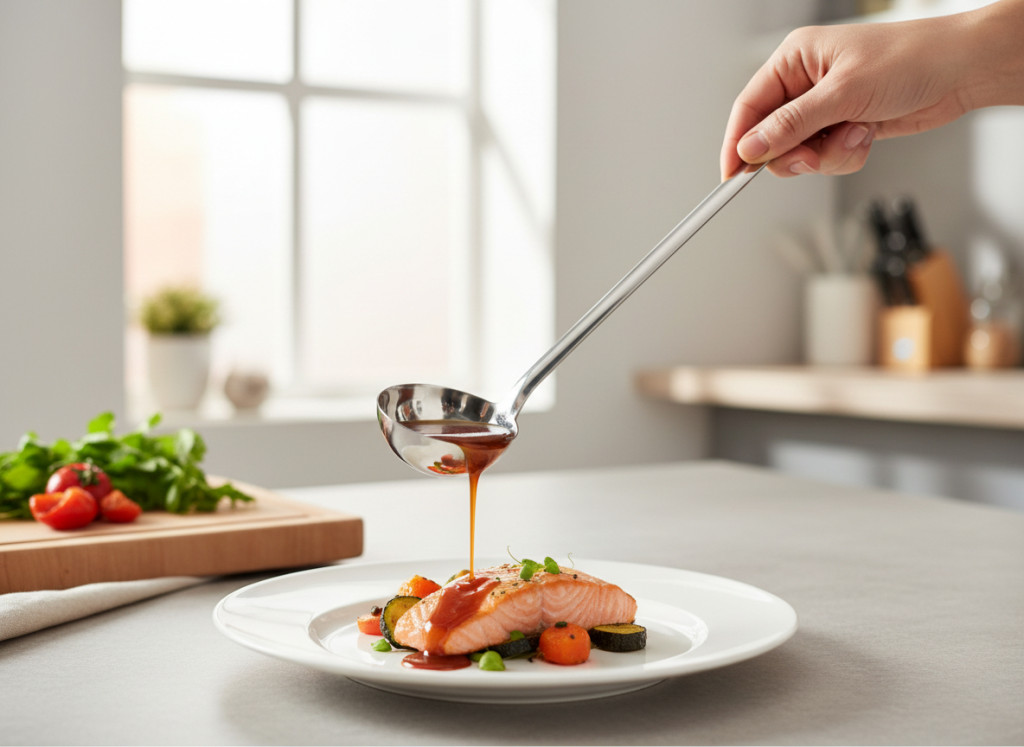 A GrandCHEF 0,1 literes (100 ml) merőkanál ideális választás közepes mennyiségek pontos adagolásához. A 8 cm átmérőjű merőrész praktikus méretet biztosít, amikor nem kell túl nagy adag, de a 70 ml már kevés lenne.