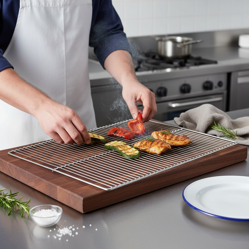 A de Buyer Grillrács rozsdamentes acélból készült, amely ellenáll a korróziónak és könnyen tisztítható. Ez az anyag biztosítja, hogy a grillrács hosszú távon is megőrizze eredeti állapotát, így rendszeres használatra is tökéletes választás.