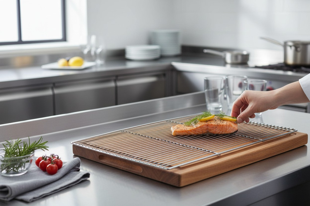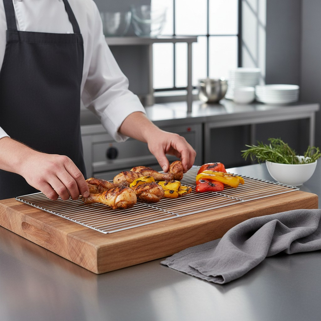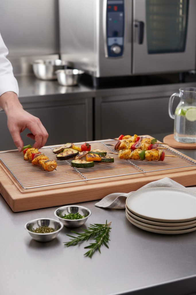 Az 53×32,5 cm-es GN 1/1 méretnek köszönhetően a grillrács számos helyzetben alkalmazható: