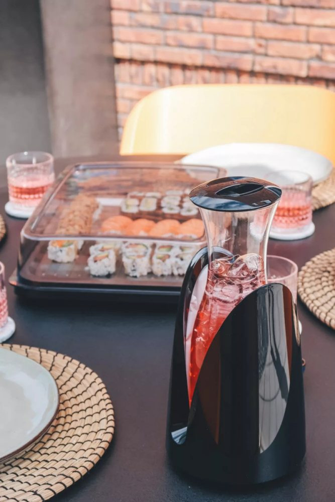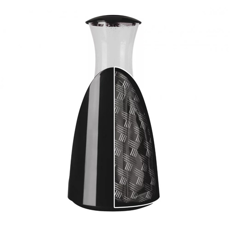 A 1 literes, fekete gyorshűtő kancsó speciális hűtőbetéttel rendelkezik, amely pillanatok alatt lehűti az italokat. A kancsó ideális választás limonádék, gyümölcslevek, borok vagy más italok gyors hűtésére. A fekete szín elegáns megjelenést kölcsönöz a terméknek.