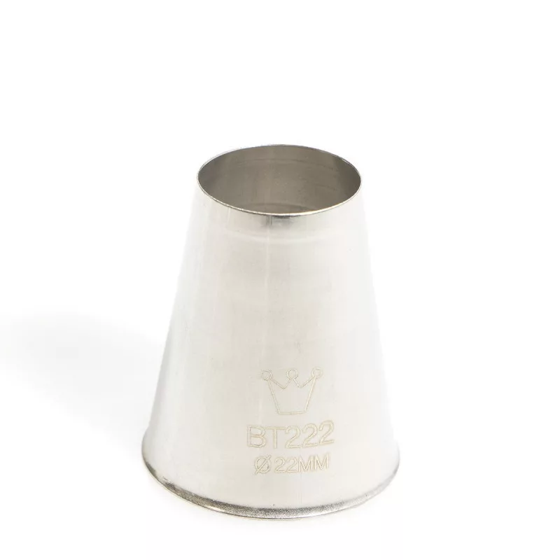 Rozsdamentes polirozott acél, kerek habcső, táskához vagy habzsákhoz, 2-24 mm-es kimeneti lyuk átmérővel.Torták, sütemények, kekszek habbal, krémmel való dekorálására használt eszköz.A névben szereplő átmérő a kimeneti nyílásra vonatkozik.Élelmiszerbiztonságos termék.Megfelelőségi nyilatkozattal rendelkező cukrászati termék.Olasz gyártású cukrászati eszköz.Termék méret: nagy átmérő 25 mm, magasság 50 mm.Első használat előtt alaposan mossa el.Mosogatógépben mosható.