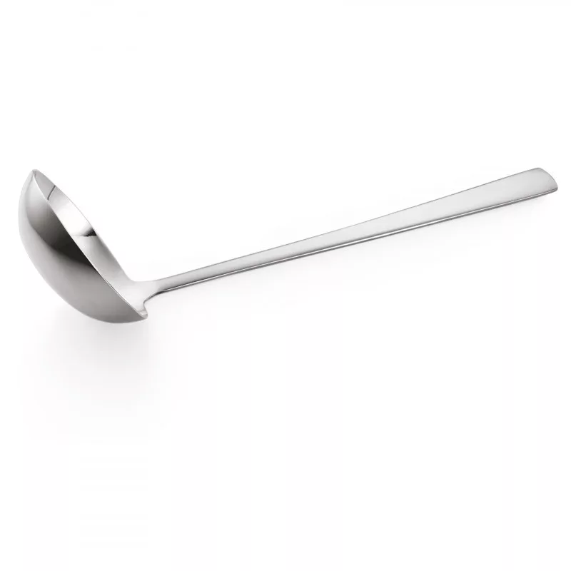 A Hamburg levesmerőkanál egy kiváló minőségű és praktikus konyhai eszköz, amelyet speciálisan terveztek a levesek és más folyékony ételek könnyű és hatékony adagolásához. Ez a levesmerőkanál különleges tulajdonságokkal rendelkezik, amelyek megkönnyítik a főzést és a tálalást.A Hamburg levesmerőkanál ergonomikus kialakítású, így kényelmesen használható. A markolat kényelmes fogást biztosít, és a kanál hosszú nyelével könnyen elérhetővé teszi a mélyebb edényeket is. Ezáltal a levesek és más folyékony ételek könnyedén adagolhatók, anélkül hogy a kezünk belemenne a forró levesbe vagy más ételbe.A levesmerőkanál készült tartós és hőálló anyagból, amely biztosítja a hosszú élettartamot és a biztonságos használatot. A Hamburg levesmerőkanál rozsdamentes acélból készül, amely ellenáll a korróziónak és a karcoknak. Ezáltal könnyen tisztítható és higiénikus marad.A Hamburg levesmerőkanál különleges kialakítása lehetővé teszi a hatékony adagolást. A kanál széles és mély forma, amely lehetővé teszi a nagyobb mennyiségű leves vagy más folyékony étel felvételét. Emellett a kanál alján található lyukak segítségével a felesleges levest vagy folyadékot könnyedén le lehet szűrni, így csak az ételek maradnak a kanálban.Ezenkívül a Hamburg levesmerőkanál stílusos és elegáns megjelenéssel rendelkezik, amely tökéletesen illeszkedik a modern konyhákba. A letisztult és egyszerű design lehetővé teszi, hogy a kanál könnyen illeszkedjen a konyhai eszközök többi részéhez.Összességében a Hamburg levesmerőkanál egy kiváló minőségű és praktikus eszköz, amely megkönnyíti a levesek és más folyékony ételek adagolását. A kényelmes fogás, a tartós anyag és a hatékony adagolás lehetőségei miatt ez a levesmerőkanál elengedhetetlen eszköz lehet minden konyhában.