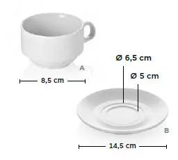 - Átmérő: 14,5 cm – kompatibilis legtöbb kávés csészével.