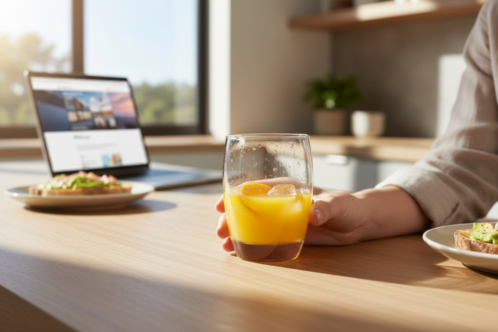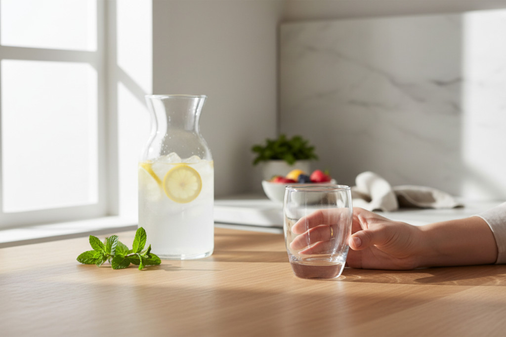 A pohár üvegből készült, kellemes tapintású és stabil kialakítású. A forma kényelmes fogást ad, jól illeszkedik a kézbe, miközben a vastagabb alsó rész biztonságosabb használatot biztosít.