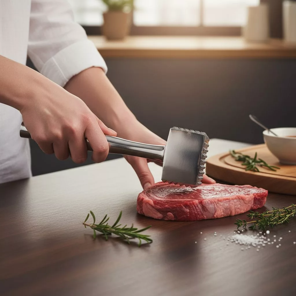 A húsklopfoló egy olyan konyhai eszköz, amelyet a húsok készítése során használnak. Ez a konkrét húsklopfoló méretei 6,5×6,5x32 cm, ami ideális méretet biztosít a hatékony és kényelmes használathoz.A húsklopfoló fő funkciója az, hogy segítsen a húsok puhításában és vékonyításában. A készülék két részből áll: egy markolatból és egy lapos, fém vagy műanyag fejből. A fej általában kis, éles tüskékből áll, amelyeket a húsba kell beleszúrni.A húsklopfoló használata egyszerű. Először helyezze a húst egy vágódeszkára vagy más sík felületre. Ezután vegye a húsklopfolót a kezébe, és a tüskéket óvatosan szúrja a húsba. A klopfolóval történő ütögetés segít megtörni a hús rostjait, ami puhábbá és könnyebben rághatóvá teszi azt.A húsklopfoló használata számos előnnyel jár. Először is, segít a húsok egyenletesen megsütésében, mivel a puhított hús gyorsabban és egyenletesebben melegszik át. Másodszor, a klopfolóval történő ütögetés segít a húsok fűszerezésében, mivel a fűszerek jobban bejutnak a húsba. Harmadszor, a puhított hús könnyebben emészthetővé válik, így javítva az étel élvezeti értékét.Ez a konkrét húsklopfoló méreteivel és kialakításával kényelmes és hatékony használatot biztosít. A 6,5×6,5x32 cm-es méret ideális a konyhai tároláshoz, és a markolat kialakítása kényelmes fogást biztosít. A tüskék élesek és tartósak, így hosszú távon is hatékonyan használhatóak.Összességében a húsklopfoló egy hasznos és praktikus eszköz a konyhában. Segít a húsok puhításában és vékonyításában, valamint elősegíti az egyenletes sütést és a fűszerek jobb bejutását. A 6,5×6,5x32 cm-es méretével és kényelmes kialakításával ez a húsklopfoló ideális választás minden otthoni szakács számára.