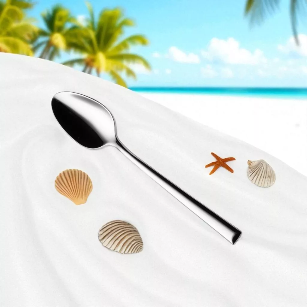 Az Itaca teáskanál az olasz formatervezés egyik legjobb példája: egyszerre funkcionális, elegáns és tartós. A 18/10 rozsdamentes acél anyagösszetétel biztosítja a magas fényt, a karcállóságot és a korróziómentességet. A 3 mm-es vastagság stabil fogást ad, miközben a letisztult forma minden terítékhez illik – klasszikustól a modernig.