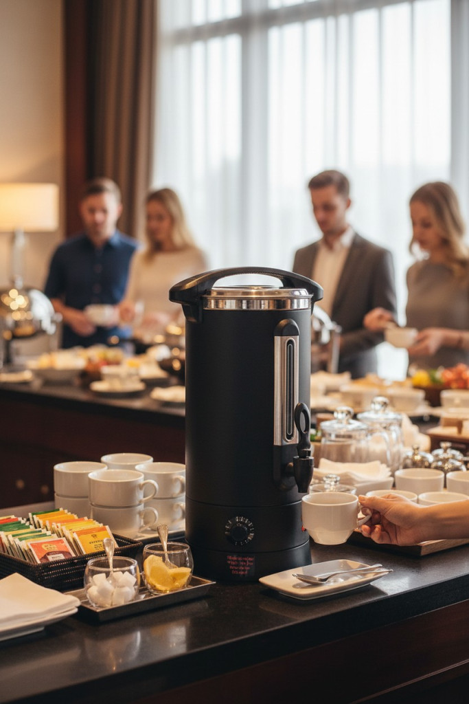 A 20 literes italmelegentartó adagoló csappal professzionális vendéglátóipari eszköz, amely nagy mennyiségű víz vagy meleg ital gyors felmelegítésére és hőntartására szolgál. Ideális hotelekben, svédasztalos reggeliztetésnél, rendezvényeken, konferenciákon és közösségi felhasználásra.