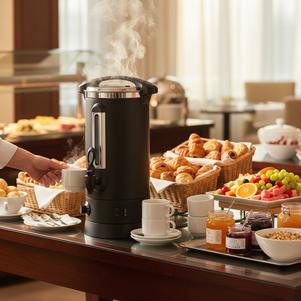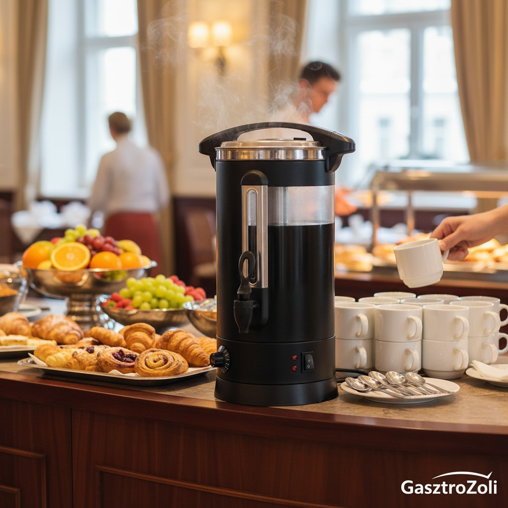 Az 8,7 literes italmelegentartó adagoló csappal vendéglátóipari használatra készült termosztátos forróvíz adagoló és italmelegentartó. Alkalmas víz melegítésére vagy forralására, majd a kívánt hőmérséklet szinten tartására, ezért ideális hotelekben, reggeliztetésnél, svédasztalos kiszolgálásnál, irodákban, rendezvényeken és közösségi felhasználásra.