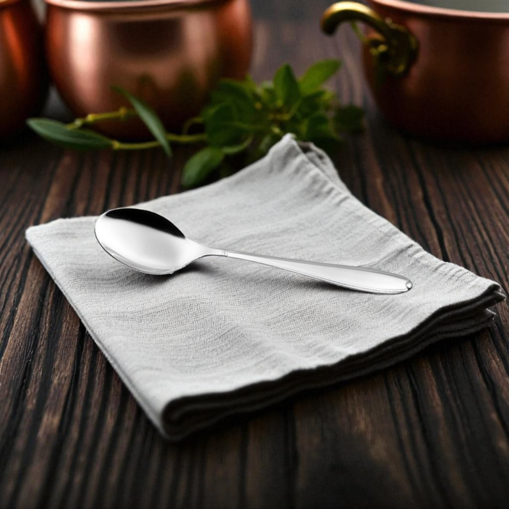 A Kappa evőkanál 2,5 mm a klasszikus olasz dizájn és a modern funkcionalitás találkozása. A 18/10 arányú rozsdamentes acél kiváló minőségű anyag, amely ellenáll a korróziónak és megőrzi tükörfényes ragyogását hosszú éveken át. A kollekció vékony, harmonikus vonalai az egyszerűséget és a kifinomultságot képviselik, így tökéletes mindennapi és ünnepi használatra egyaránt.