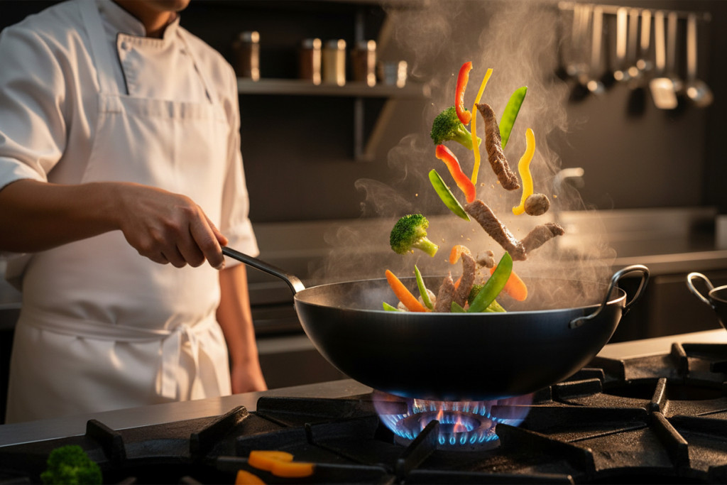 • Ideális a keleti konyha ételeinek, például stir-fry ételeknek, rántott ételeknek és párolt ételeknek az elkészítéséhez.