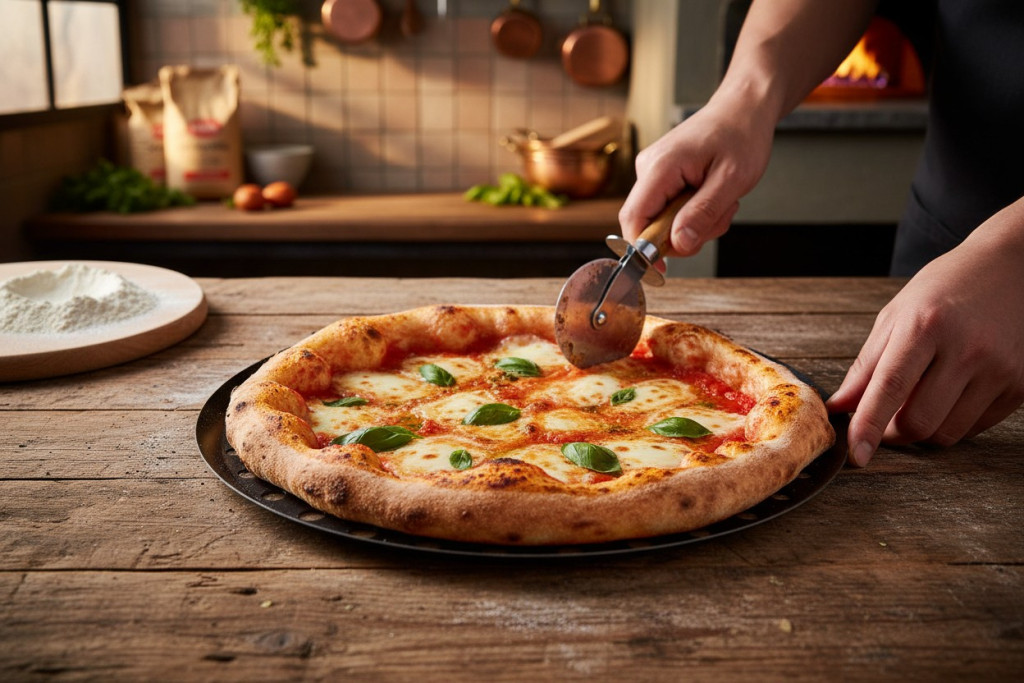 GasztroZoli tipp: A perforált pizzaforma gyorsabban süt és ropogósabb pizzát ad, mert a lyukakon keresztül a forró levegő közvetlenül éri a tésztát. Olasz típusú vékony pizzához kifejezetten jó.