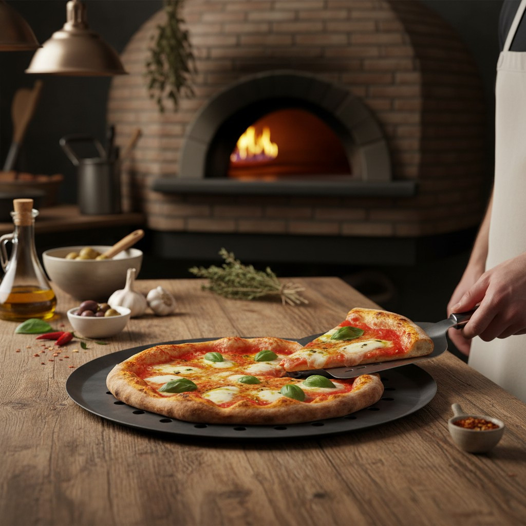 • Perforált pizzaforma ropogós pizzához