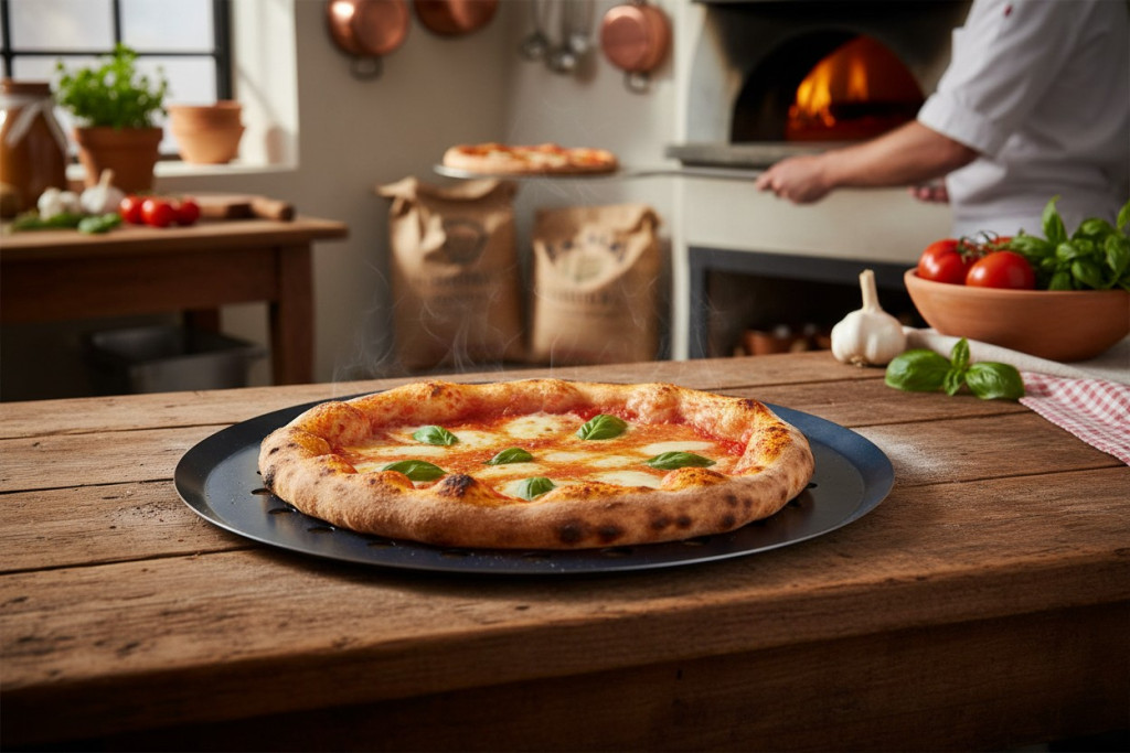 A perem nélküli kialakítás miatt a pizza könnyen lecsúsztatható a formáról, így ideális pizzák, tarte-ok, omlós vagy leveles tészták sütéséhez. A forma masszív, nem vetemedik és magas hőmérsékleten is használható.