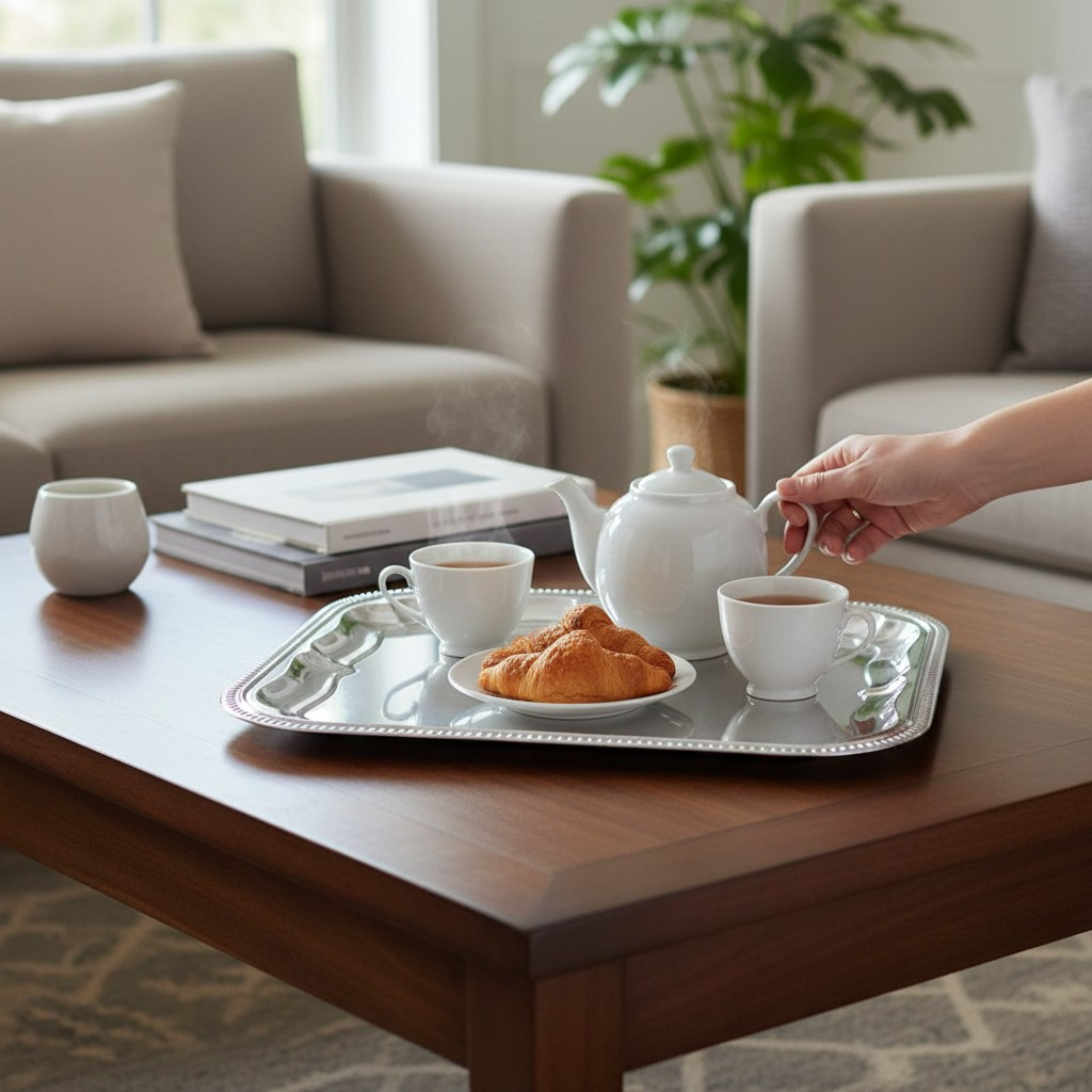 Króm Tálca 41x31 cmEz a stílusos és elegáns króm tálca tökéletes választás mindennapi használatra és különleges alkalmakra egyaránt. A 41x31 cm-es méret ideális a különféle ételek, italok vagy dekorációk tálalására, legyen szó családi összejövetelekről, ünnepi vacsorákról vagy akár üzleti rendezvényekről.A tálca kiváló minőségű króm anyagból készült, amely nemcsak esztétikus megjelenést biztosít, hanem tartósságot és hosszú élettartamot is garantál. A króm felület fényes, tükörszerű csillogása eleganciát kölcsönöz a tálcának, miközben könnyen tisztítható és karbantartható. A tálca pereme finoman megmunkált, ami nemcsak a biztonságos fogást segíti elő, hanem megakadályozza az ételek vagy italok lecsúszását is.A tálca alja csúszásmentes kialakítással rendelkezik, amely stabilitást biztosít a használat során, így elkerülhetők a balesetek. A króm tálca sokoldalúan használható: kiválóan alkalmas reggelik, uzsonnák, desszertek vagy akár koktélok felszolgálására. Emellett dekoratív elemként is megállja a helyét, például gyertyák, virágok vagy más dísztárgyak elhelyezésére.Összességében ez a króm tálca nemcsak praktikus és funkcionális, hanem esztétikus kiegészítője is lehet bármely otthonnak vagy vendéglátóipari egységnek. Ideális választás mindazok számára, akik értékelik a minőséget és a stílust.