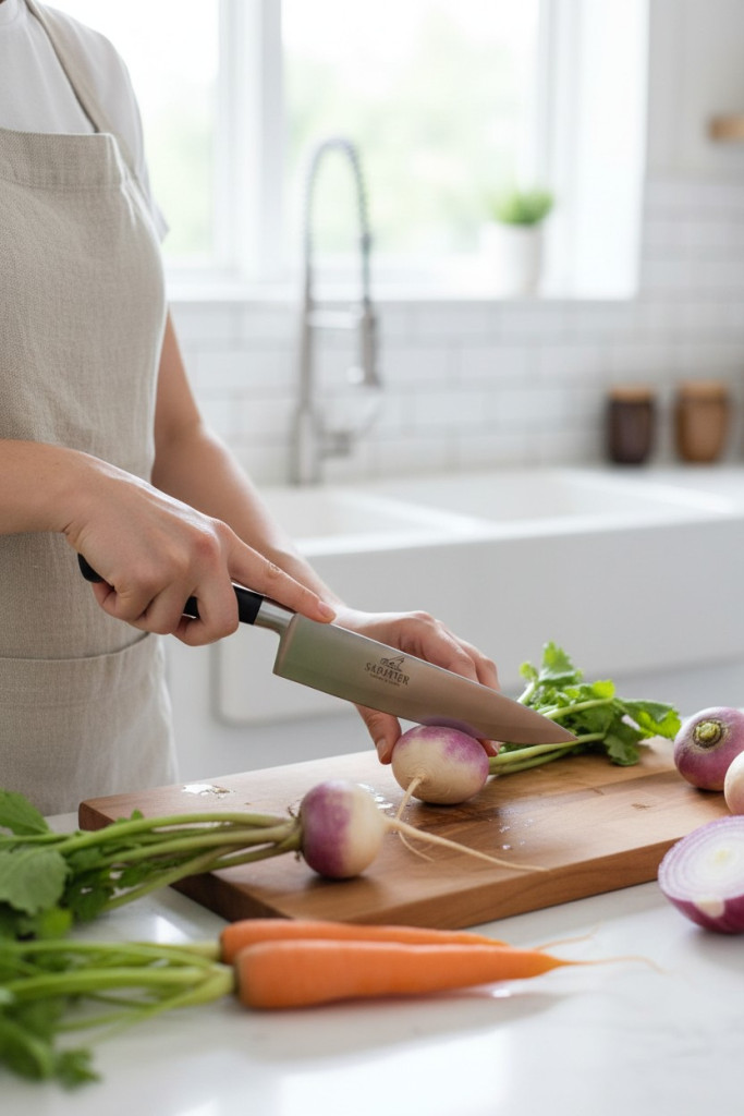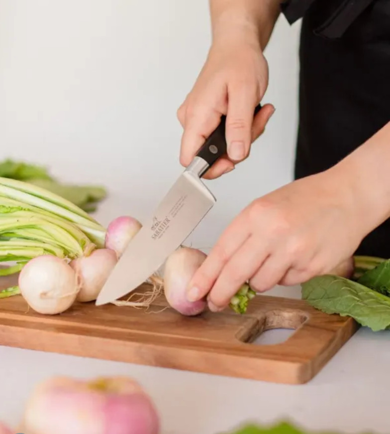 A Lion Sabatier Idéal séfkés 15 cm egy univerzális konyhakés, amely zöldségek, húsok, fűszernövények aprítására és szeletelésére készült. A 15 cm-es penge a klasszikus séfkés kisebb változata, amely könnyebben irányítható és precíz munkákhoz ideális.