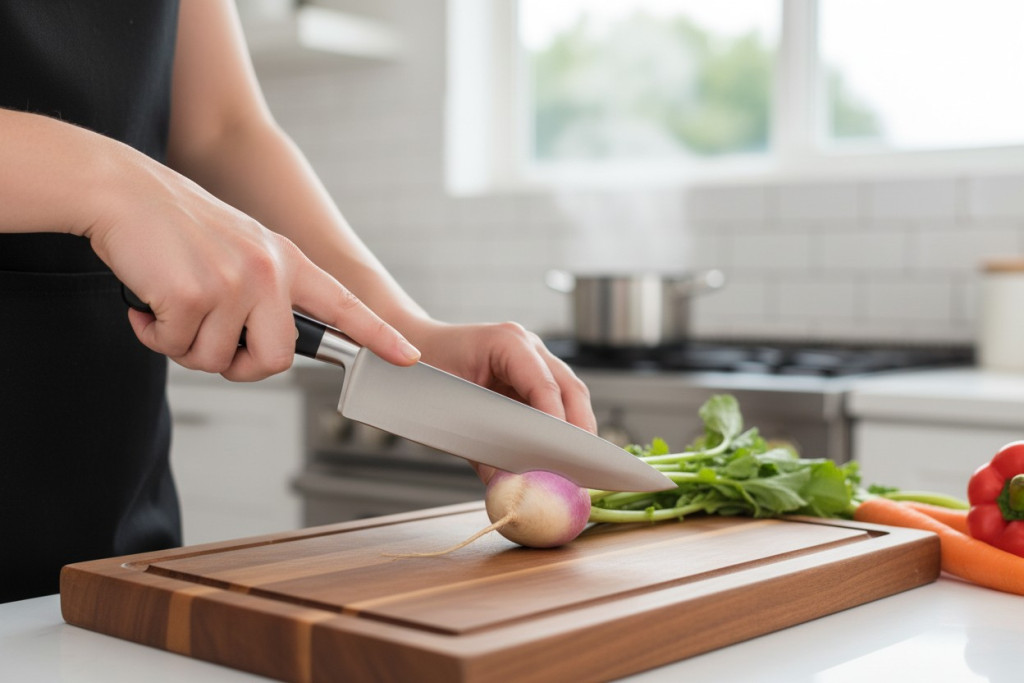 A penge enyhén ívelt kialakítású, amely lehetővé teszi a hintázó vágómozdulatot, így gyors és egyenletes aprítást tesz lehetővé. Ez a késforma az egyik leggyakrabban használt konyhakés típus.