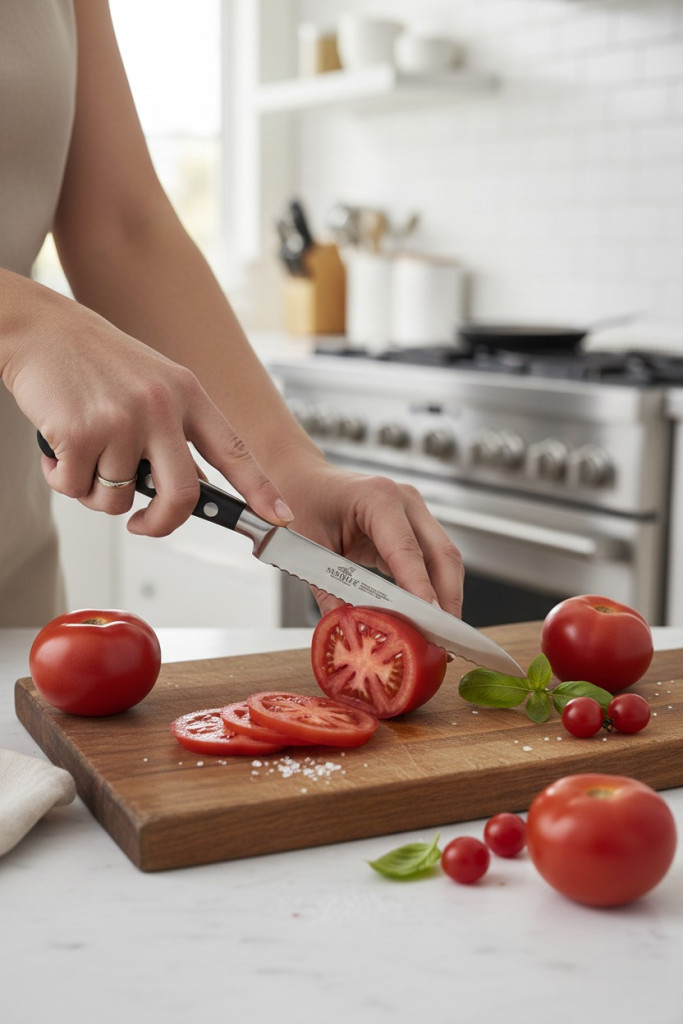 A kés univerzális konyhakésként is használható zsemle, kolbász, sajtok vagy kisebb alapanyagok szeletelésére. A recés penge hosszú ideig éles marad és nem igényel hagyományos élezést.