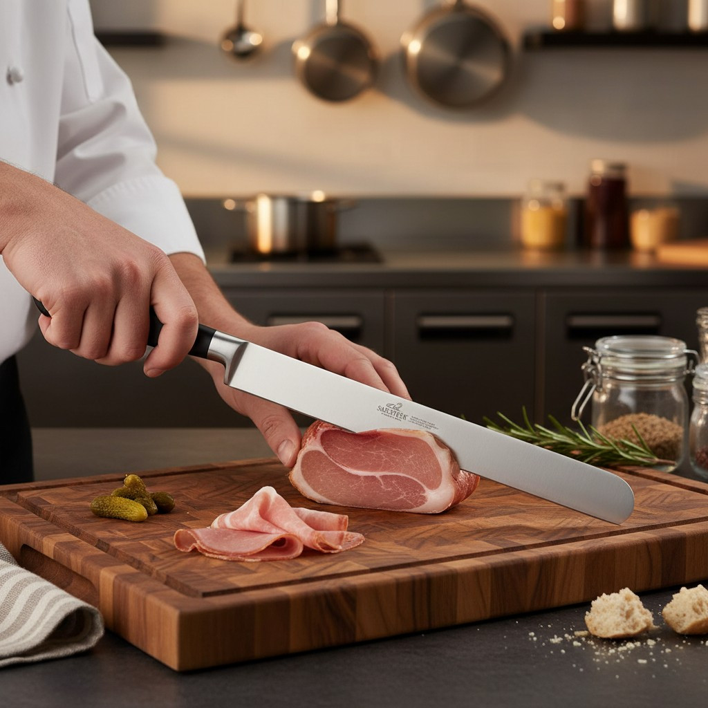 A kés különösen alkalmas nyers vagy főtt sonka, sült húsok, felvágottak és nagyobb húsdarabok szeletelésére. A vékony penge kisebb ellenállással vág, így szép, egyenletes szeletek készíthetők.