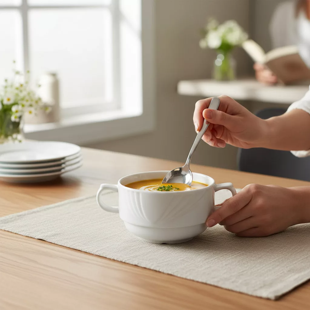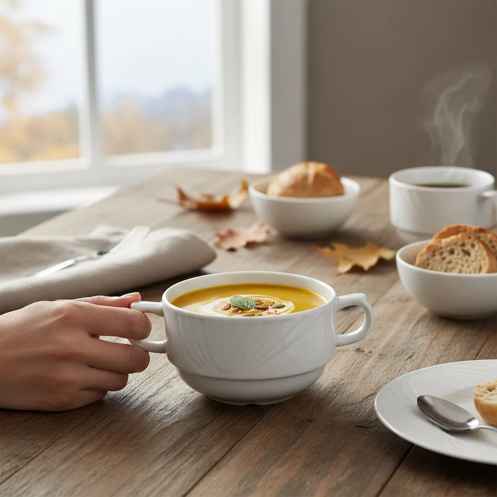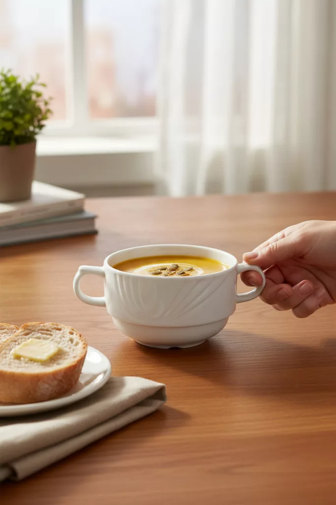 - Hangulatos levesestékhez: Tálalja benne kedvenc krémlevesét pirított kenyérkockákkal vagy friss fűszernövényekkel díszítve.