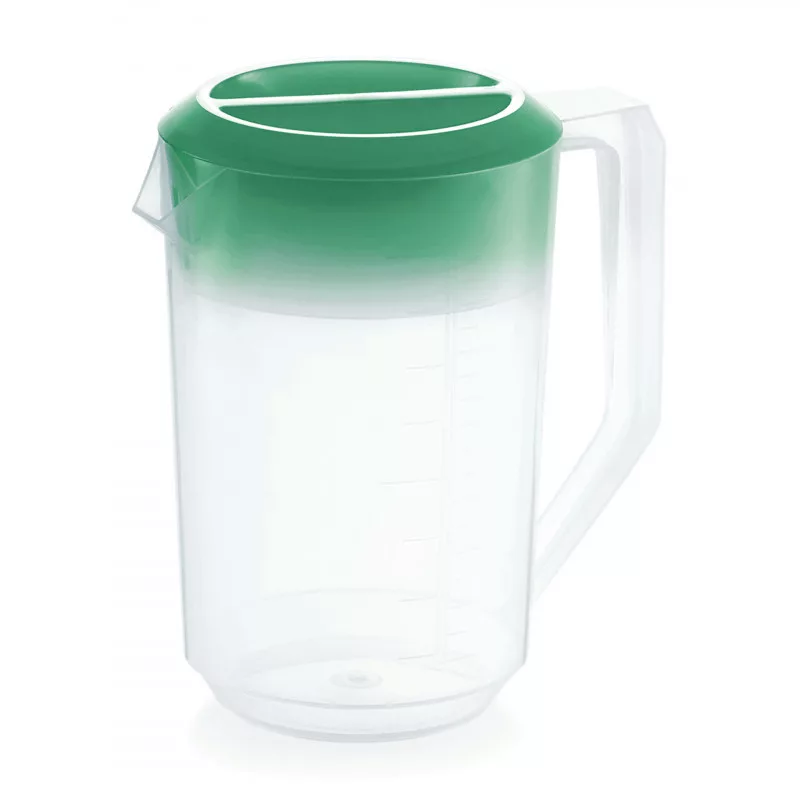 A polipropilénből készült kancsó könnyű, tartós és praktikus megoldást kínál italok tárolására és felszolgálására. 1,8 literes űrtartalma ideális a mindennapi használatra. A zöld tető frissességet visz a konyhába, a mércés jelölés pedig pontos kimérést tesz lehetővé.