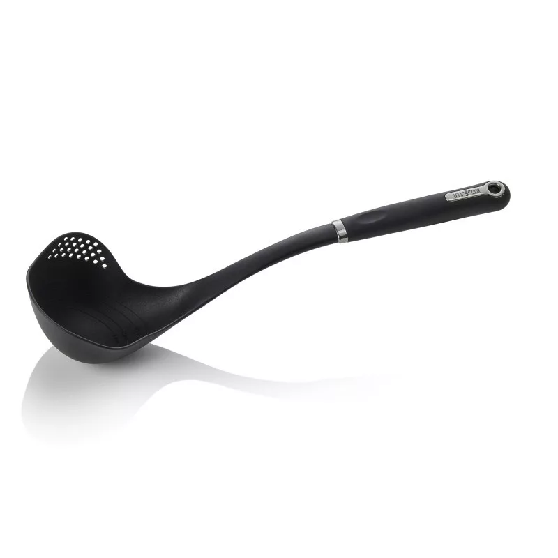 A Let’s Cook Merőkanál egy kiváló minőségű konyhai eszköz, amelyet a főzés és sütés során használhatunk. A merőkanál hossza 35,7 cm, ami ideális méretet biztosít a különböző edényekben való munkához.A merőkanál nyelét gumírozott anyaggal borították, hogy kényelmes és biztonságos fogást nyújtson. Ez a kialakítás megakadályozza a csúszást és a kéz kifáradását hosszabb ideig tartó használat során. A gumírozott nyél továbbá hőálló, így nem kell aggódnunk, hogy megégetjük a kezünket, amikor forró ételeket keverünk.A merőkanál kiváló minőségű anyagokból készült, amelyek tartósságot és hosszú élettartamot biztosítanak. A rozsdamentes acélból készült kanál rész könnyen tisztítható és ellenáll a korróziónak. Ezáltal könnyen használható és higiénikus marad.A Let’s Cook Merőkanál sokoldalúan használható a konyhában. Ideális mennyiségek mérésére és adagolására, például levesek, szószok vagy tészták esetében. A kanál méretei jól láthatók a nyélre gravírozva, így könnyen követhetjük a recepteket és pontosan adagolhatunk.Ez a merőkanál a Let’s Cook márkához tartozik, amely a minőségi és praktikus konyhai eszközöket képviseli. A Let’s Cook termékek a modern konyhák igényeit szem előtt tartva készülnek, és a legmagasabb minőségi szabványoknak megfelelnek.Összességében a Let’s Cook Merőkanál egy kiváló választás minden otthoni szakács számára. A gumírozott nyél, a tartós anyagok és a sokoldalú felhasználhatóság garantálják, hogy ez a merőkanál hosszú távon megbízható segítőnk lesz a konyhában.