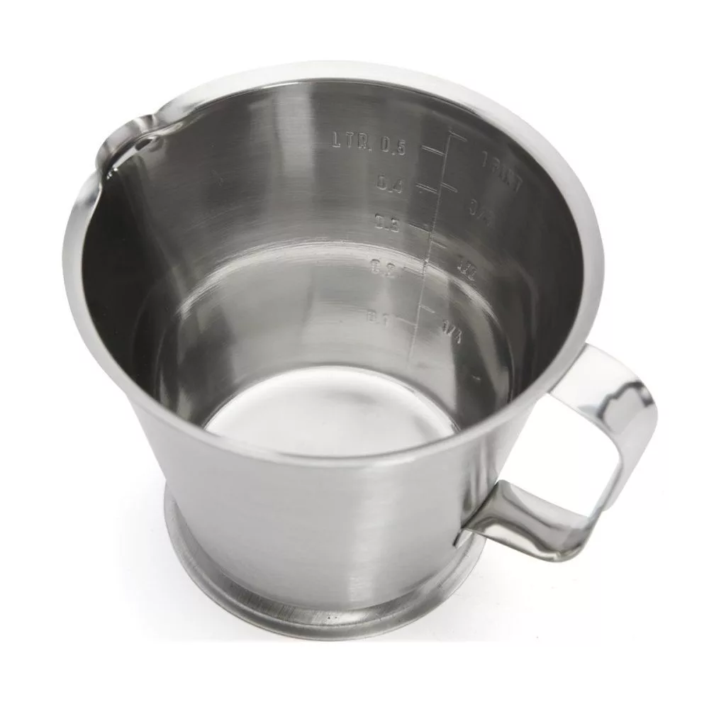 Mérőkancsó, 500 ml, rozsdamentes acél – de Buyer, belső skálával, stabil talppal