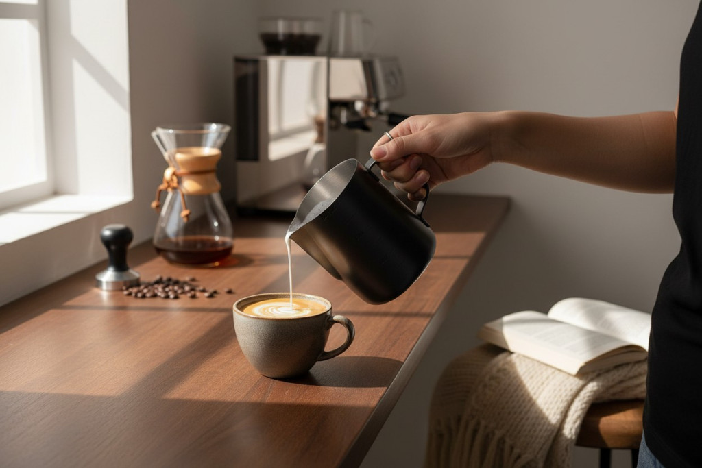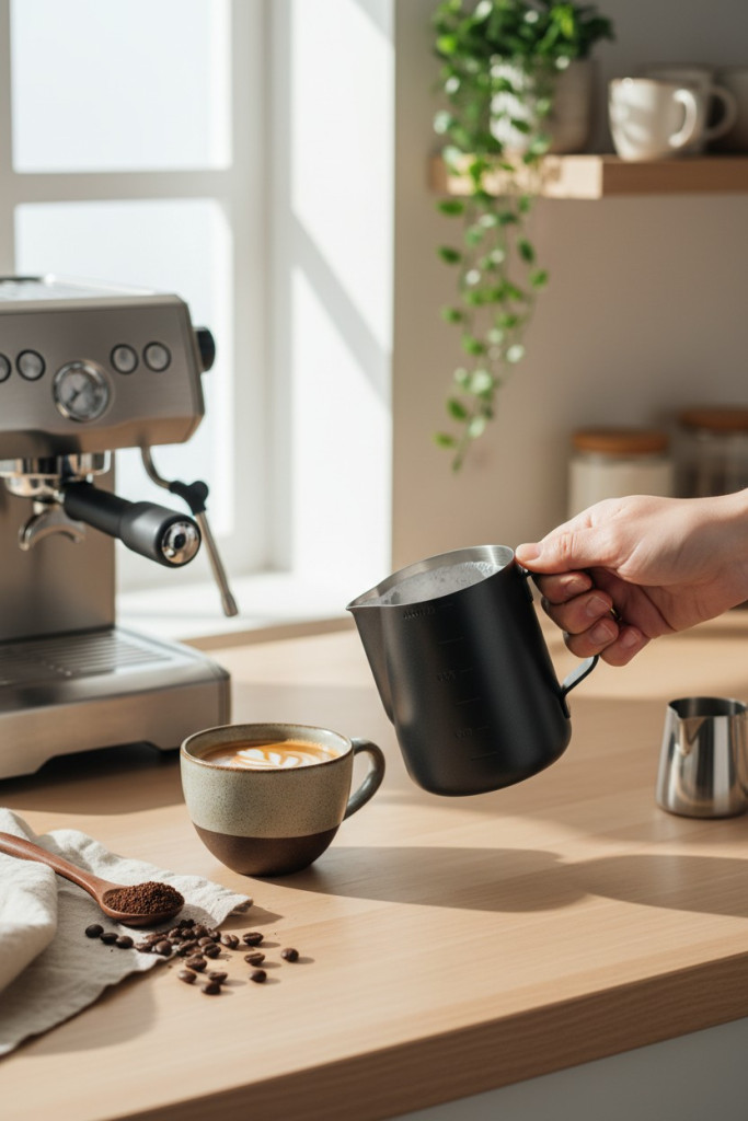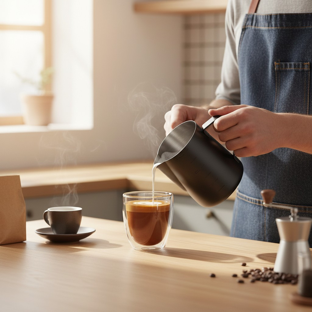 Barista tejhabosító mérőkancsó, 600 ml, 7,5x11 cm, tapadásmentes külső bevonat, rozsdamentes - Német minőség