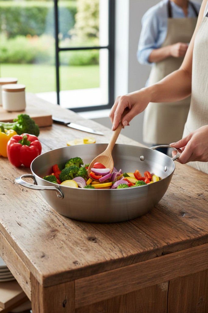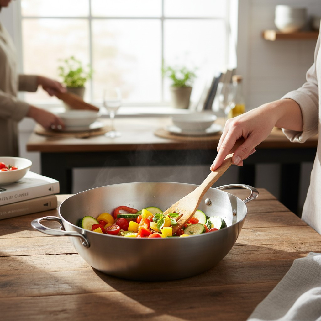• Kényelmes használat: A két füles kialakítás biztonságos és kényelmes fogást biztosít. A serpenyő könnyen felemelhető és mozgatható.