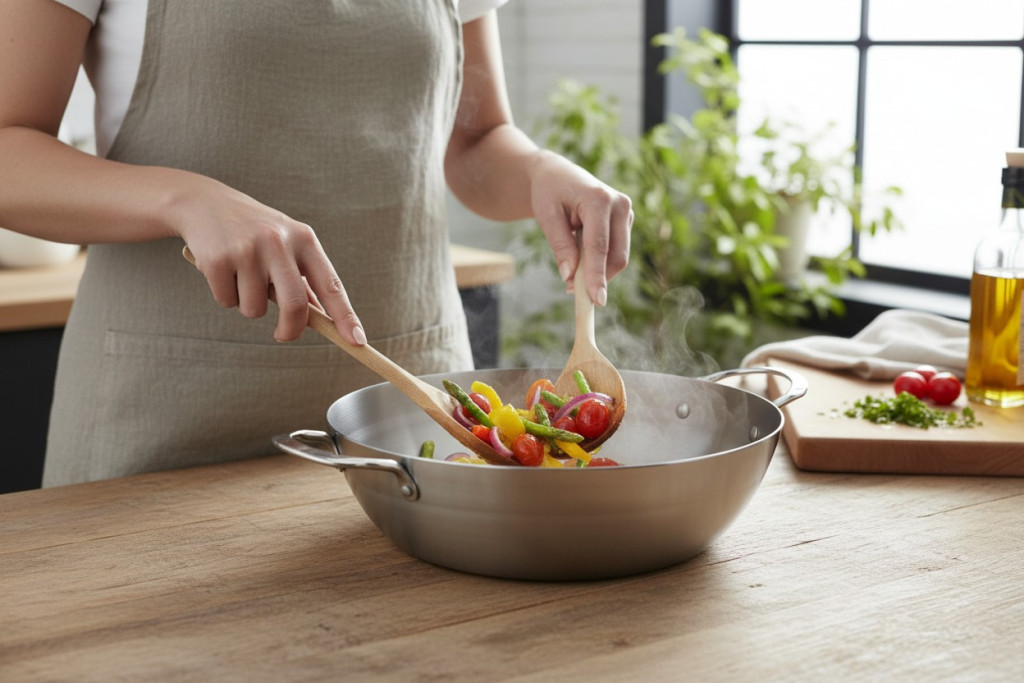 • Első használat előtt: Mossa el a serpenyőt forró vízzel és szappannal, majd alaposan szárítsa meg. Ezután kenje be vékonyan növényi olajjal, és hevítse fel, amíg enyhén füstölni nem kezd. Hagyja kihűlni, majd törölje ki az olajat. Ezt a folyamatot "beavatásnak" nevezik, és fontos a serpenyő megfelelő használatához.