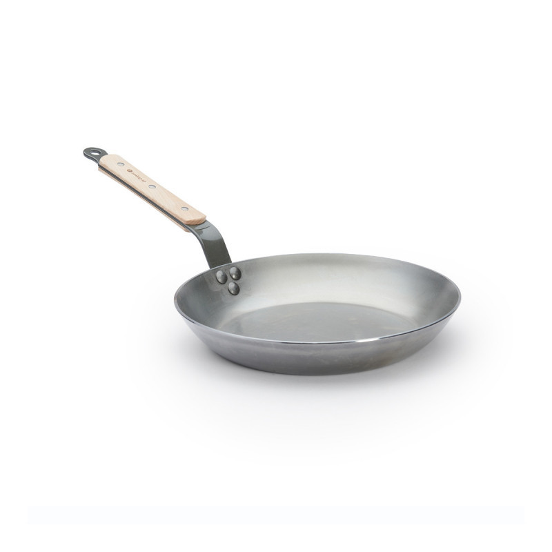 28 cm átmérőjű vasserpenyő bükkfa nyéllel, ideális a mindennapi főzéshez. 100% természetes szénacélból készült, méhviasz bevonattal a tapadásmentességért.