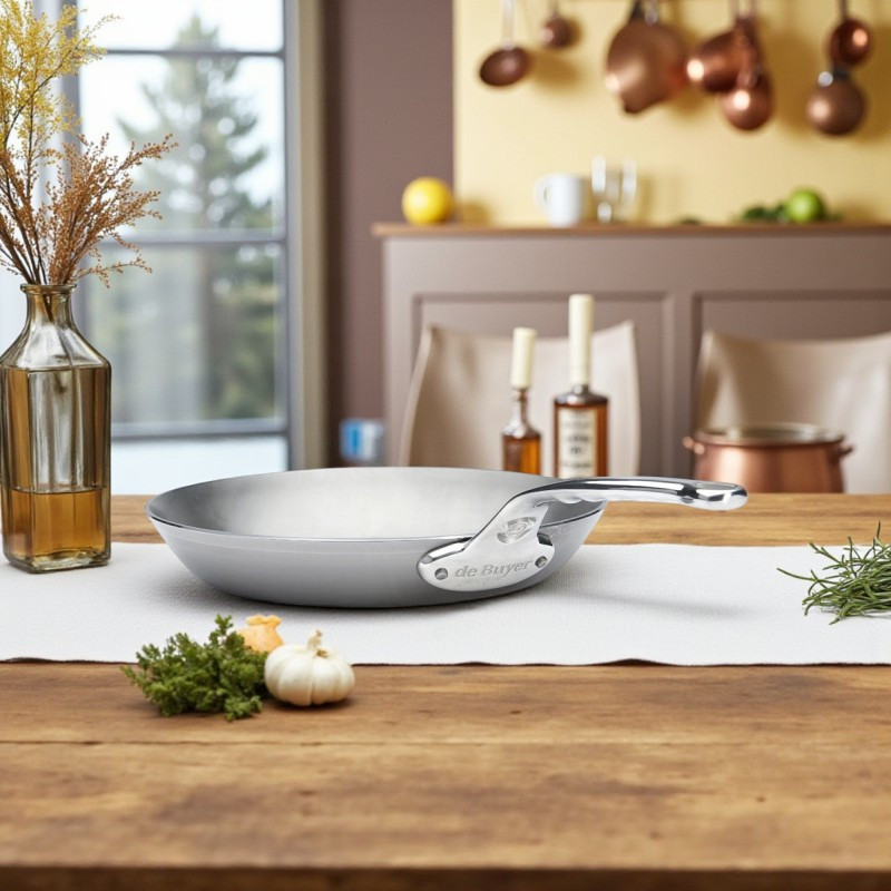 Mineral B Pro vasserpenyő 28 cm – de Buyer, 3 mm vastag, ergonomikus rozsdamentes nyéllel