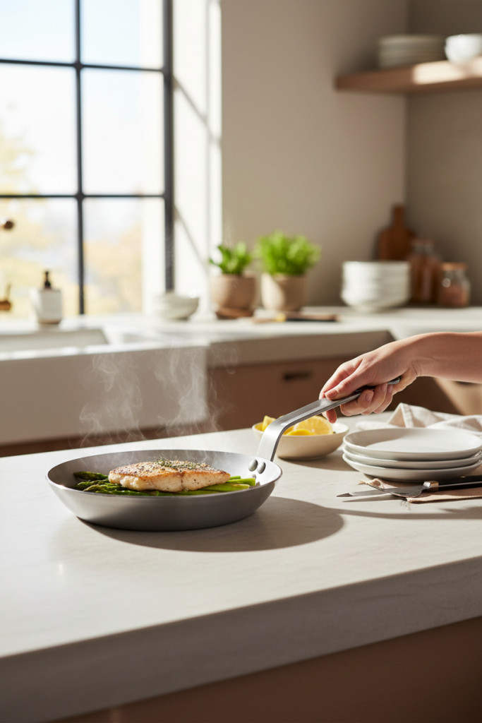 • Kényelmes használat: A nyél biztonságos és kényelmes fogást biztosít. A serpenyő könnyen felemelhető és mozgatható.