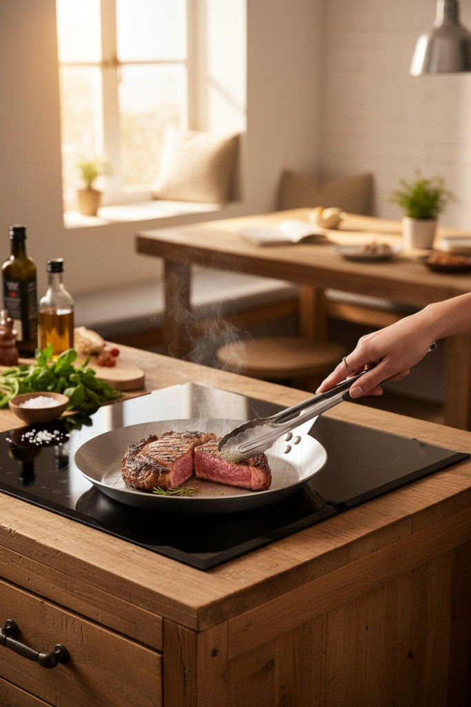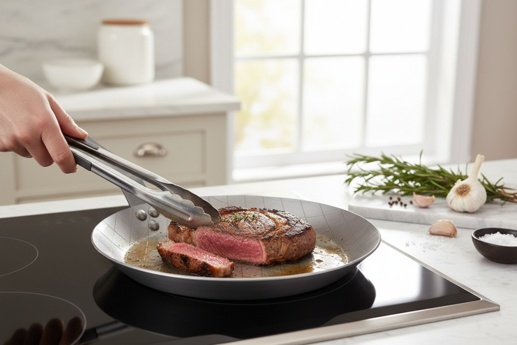 • Kiváló hővezetés: A szénacél kiváló hővezető képessége biztosítja, hogy a steak egyenletesen süljön meg, így elkerülheti az égést és a nyers részeket. A hő egyenletesen oszlik el a serpenyő teljes felületén.