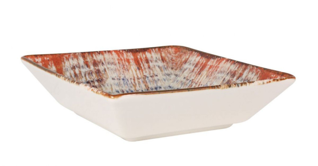 A Ming III Charro porcelán mélytányér 17x17x4,5 cm-es méretével tökéletes választás levesekhez, főzelékekhez, tésztákhoz és krémes desszertekhez. A négyzetes forma egyediséget kölcsönöz az asztalnak, míg a rusztikus máz természetes, kézműves hatást biztosít minden darabnak.