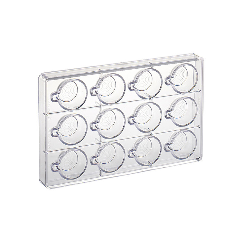 - Kiváló minőségű polikarbonát: A polikarbonát rendkívül tartós, ütésálló és hőálló anyag, amely garantálja a forma hosszú élettartamát. Sima felülete biztosítja a csokoládé fényességét és a könnyű kifordítást.