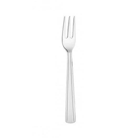 A villa sima, fényes felületű, letisztult vonalvezetésű és modern stílusú, ami elegáns megjelenést kölcsönöz neki. A fogantyú enyhén szélesedik az alja felé, ami kényelmes fogást biztosít, miközben a három hegyes, keskeny villaág kiválóan alkalmas sütemények, torták vagy kisebb falatok fogyasztására.