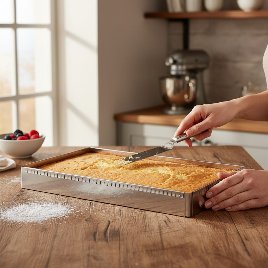 - Éles szögek: Az éles szögeknek köszönhetően a desszertek szépen szeletelhetők.