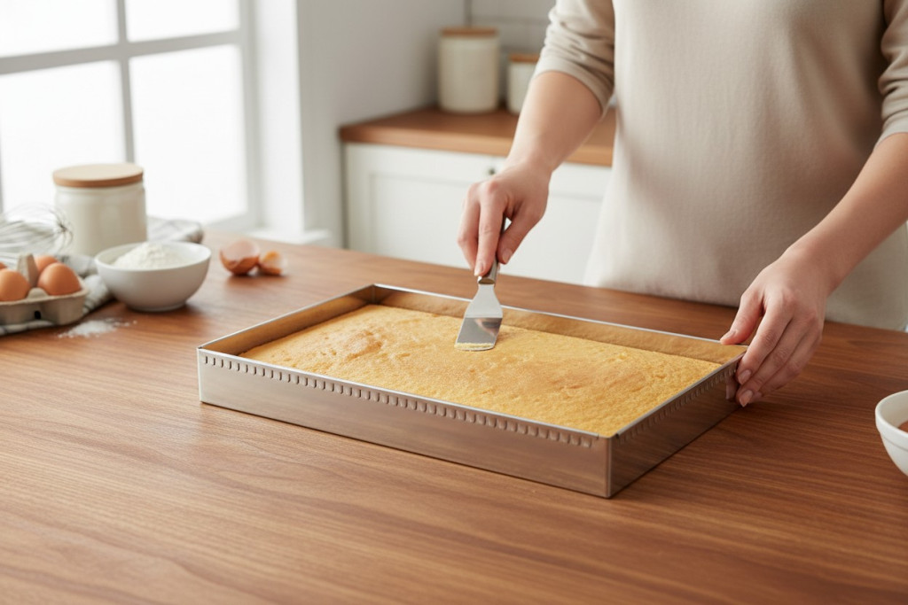 - Vízálló kialakítás: A keret alja teljesen zárt, így nem szivárog a tészta vagy a krém a sütőlapra.